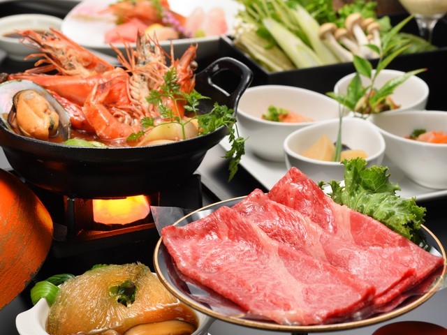 「山形牛のしゃぶしゃぶ」と「海老の海鮮鍋」当館イチオシ幸プラン